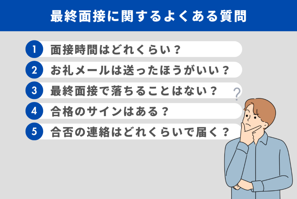 最終面接に不安を感じている方は、よくある質問もチェックしておきましょう。
