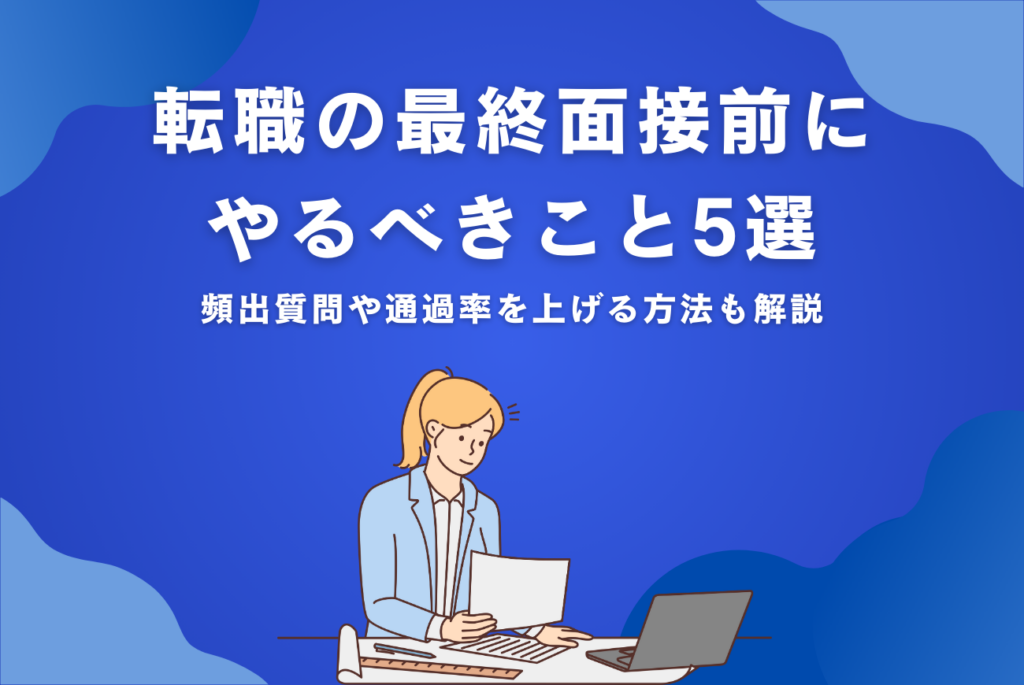そこで、この記事では転職の最終面接前にやるべきこと5選を紹介します。頻出質問や通過率を上げる方法も解説するので、最終面接を控えている方は最後までご覧ください。