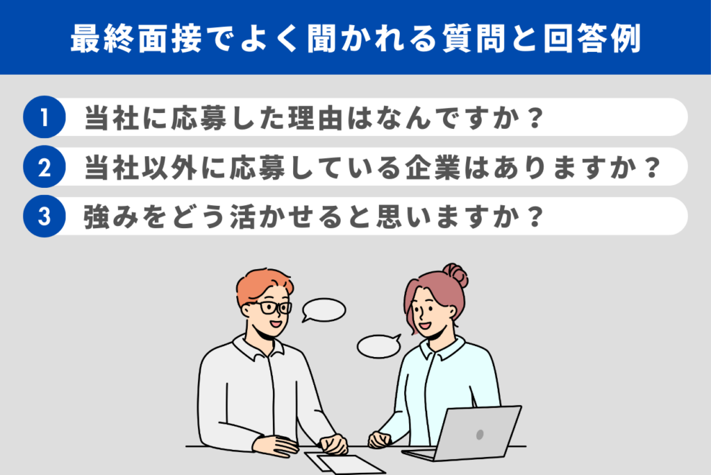 最終面接でよく聞かれる質問・回答例を3つ紹介します。