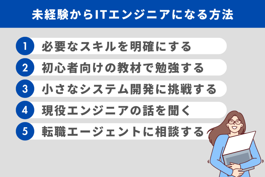 未経験からITエンジニアを目指す方は、次の方法を実践してみましょう。