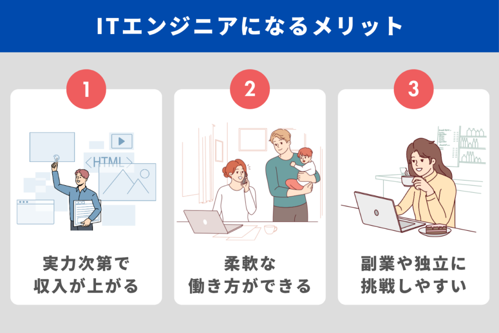 ITエンジニアという職種には、以下のようなメリットがあります。